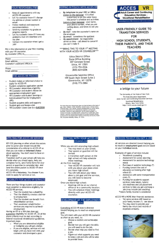 ACCESS-VR (Adult Career and Continuing Education Services–Vocational Rehabilitation) is a New York State program through the New York State Education Department that helps individuals with disabili...
